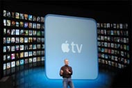 Apple TVは、Apple Remoteで離れた場所から操作できるネットワークメディアプレイヤーで、iTunesライブラリからコンテンツを再生させる仕組み。今回10/100BASE-Tの有線LANと802.11n、および40GバイトのHDDを搭載することが明らかにされた。最大5台のPCからストリーミング再生が可能(関連記事:Apple TV――米アップル幹部インタビュー)。