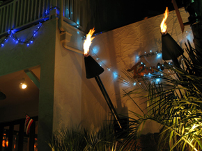 この写真(左)を見ると蛍光灯系の街灯が当たったところ(左の方の壁)が少し緑っぽくなっているのが分かる。炎をきれいに撮ろうとホワイトバランスを太陽光にしちゃったからだ。