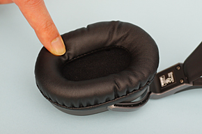 ちなみにこちらの軟質発泡ウレタン素材、上半分と下半分では硬さ(軟質発泡ウレタンの発泡率)がちょっと違っている。上半分の方が、柔らかいものを採用しているのだが、これはメガネや3Dメガネを装着しても快適に視聴できるよう配慮されたもの。筆者のようにメガネをかけている人間にとっては、これが重宝する。メガネのツルの部分が圧迫されないので、こめかみや耳が圧迫されず、一般的なヘッドホンよりもかなり快適なのだ。とくに映画視聴のような長時間利用では大きな差が出る。