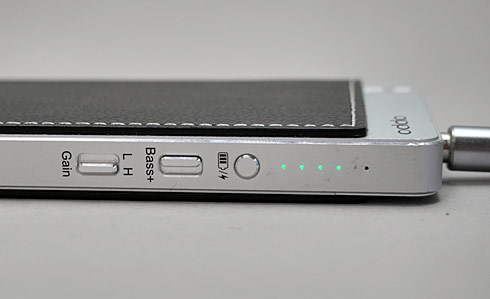 意外と重要なのは内蔵バッテリーの有無。「HA-2」の場合、iPhoneにバッテリーを供給できるうえ、30分あれば70%の充電が可能な急速充電機能「ラピッド・チャージ」を搭載。「HA-2」がフル充電状態ならiPhoneを約1.2回ぶん充電できる。バッテリー残量はボタン1つで確認できる