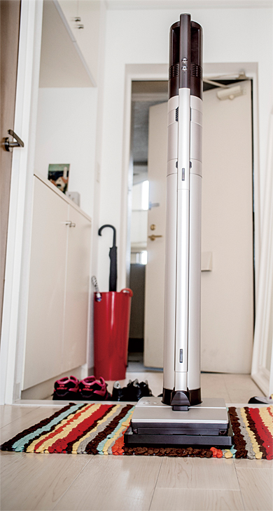ただ、こういう“なにげない女心”を実際に三菱電機はすでに製品化している。それがコードレススティック掃除機「インスティック」だ。コードレススティック掃除機自体は、表に出しておける掃除機であり、手軽に即掃除ができると、使い勝手の良さを前面にヒットしている。だが、そのほとんどは、やっぱり“掃除機”然とした形を脱却することはできず、壁際などにひっそりと出して置くことがほとんどだ。
