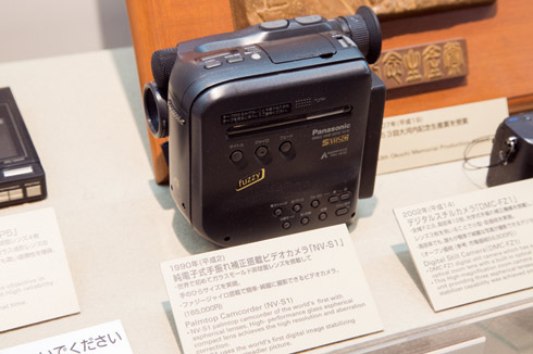 世界初となるガラスモールド非球面レンズやジャイロ式手振れ補正を搭載したS-VHS C対応のビデオカメラ「NV-S1」。手のひらサイズで、家庭用ビデオカメラの普及に貢献した。