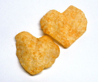 ちなみに中身のチップスはこんな感じで、「ハートチップル」の名前の通り、ハート型のスナックです。一見普通のスナック菓子で、味自体もとても美味しいのですが、やはり匂いがすごいですね。材料も小麦ベースではなく、お米ベースですので、どこか「おせんべい」っぽい食感でもあります。
