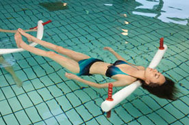 耳まで海水につかり、顔の上部のみ水面に出す。外の音が水中で遮断され、ボワンと聴こえる。海中感覚とでもいうのだろうか。やがて足がプールサイドから離されると「ああ、沈む!」と焦ったが、ちゃんと足の下にフロートを入れてくれて「浮かんだぁ」と一安心。浮き具を押されて、回されるのがキモチいい。