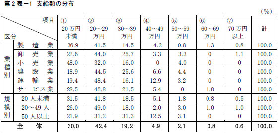 平均支給額を業種別に見てみると、最も多かったのは「小売業」で28万1311円だった。次いで「卸売業」が27万334円、「建設業」が25万8564円、「製造業」が24万7701円と続いた。