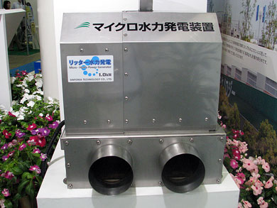 一方、EVEXエリアでクリーン発電関連のシステム/機器を展示していたのはシンフォニア テクノロジー(旧 神鋼電機)。垂直軸型の小型風力発電装置「そよ風くん V-II」は風速1メートルから回転し始め(発電開始は風速2メートルから)、また、無風時でも発電できるよう太陽電池モジュールも装備しており、これまでに国内で約900台の納入実績があるという。