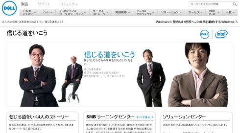 Dellの「信じる道をいこう」キャンペーンは、自社の顧客のベンチャー企業の社長何人かに登場してもらって、自社Webサイトや新聞の全面広告、電車の吊り広告などで展開している。