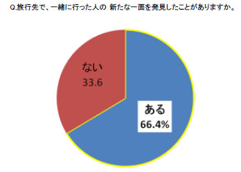 あなたは旅行先で一緒に行った恋人・異性の新たな一面を発見したことありますか? 東京都に住む20〜30代の男女に聞いたところ、66.4%は「ある」と回答していることが、リクルートのブライダルカンパニーの調査で分かった※。