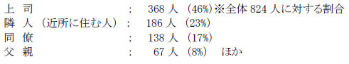 「上司」「同僚」といった会社での付き合いのある人が上位に並んだ。その理由として「仕事上の関係を保ちたいから」「プライベートと分けたいから」といった声が目立った。その一方で「口臭がきつい」「加齢臭がひどい」などニオイに関する不満を挙げる人も目立った。