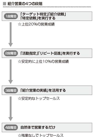 1段階目で紹介営業によって契約が取れてくると、次の段階では、紹介による契約を安定化していかなければなりません。