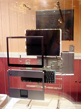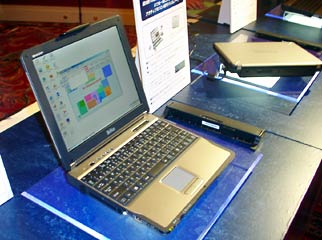 なおMicrosoft OfficeXP Personalを搭載しているのがPC-MT1-H1S,いないのがPC-MT1-H1となる。 ザウルスと連携できる「PC-SX1-H1」10.4型液晶を搭載した「PC-SX1-H1」は,B5サイズのノートPCだ。こちらはコンパクトフラッシュではなく,SDカード/スマートメディアスロットを搭載している。 ![]() これは同社の製品である「ザウルス」やデジカメなどと連携できることを目的としたもので,映像や音楽を手軽に扱える。 「PC-MT1-H1/H1Sが(仕事などで)“しっかり使う”ことを目指したものとすると,PC-SX1-H1は“いろいろ使う”ためのもの。アクティブにカジュアルに,バッグにいれて持ち運んでほしい」(シャープ広報) こちらもLANインターフェースを標準で装備しており,CPUにはCrusoeを採用。標準バッテリーで約5時間,別売りのバッテリーをつなげると10時間動作する。 「今回発表の2機種でそれぞれ採用CPUが違うのは,いわば見極めのため。IntelとCrusoe,どちらに軍配があがるのか注目している」(シャープ広報) 重さは1.43キログラムと,B5サイズでありながらPC-MT1-H1/H1Sの1.31キログラムより重い。実は今回の製品開発にあたり,液晶チームは先にPC-MT1-H1/H1Sの開発に取り組んだ。このためB5サイズのPC-SX1-H1は,前述したような薄型化最新技術の導入が,事実上間に合わなかったのだ。今後それらの技術が,B5サイズのSXシリーズに導入される可能性はあるという。 主なスペックは以下のとおり。