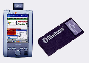 同製品はBluetooth Ver.1.1に準拠したSDカードでワイヤレス通信の到達距離は,見通し約10メートル。Bluetooth対応のPCや携帯電話などとワイヤレスで接続、データのやり取りを行える。また,Bluetooth SDカードを挿したGENIO e同士でのチャットも可能。別売りのBluetoothワイヤレスモデムステーションを使ったワイヤレスインターネットアクセスも実現できる。