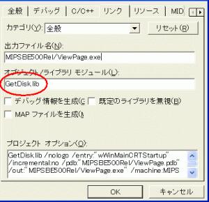 なお,GetUserDiskName関数を使うときには,GetDisk.Libファイルをリンクしなくてはならない。[プロジェクト]-[設定]の「リンク」で「オブジェクト/ライブラリ モジュール」にGetDisk.Libを付け加えよう。