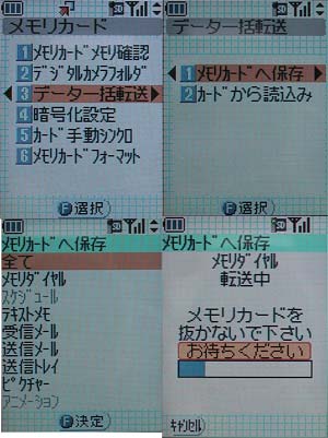 ![]() 「データ一括転送」によって,各種データをSDカードに転送できる。カメラで撮った画像も,いちいちメールで送る必要はなくなった
