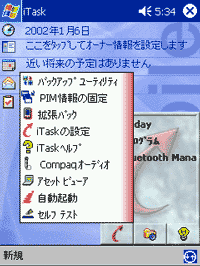 定番ユーティリティは健在,Bluetoothもソフトウェアコントロール英語圏向けの製品に付属するPIM拡張ソフトや音声認識ソフトは旧製品同様国内モデルには存在しないが,タスクマネージャーも兼ねるユーティリティは健在だ。iPAQ固有の機能に対応するソフトの呼び出し,バックグランドで動作しているソフトへの切換えなどが容易に行える。