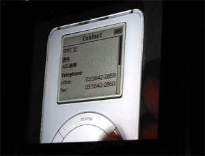Macworld Tokyo 2002の基調講演で,iPodがvCard形式のデータ保存をサポートすることが発表された。Macworld SF 2002で同様のサードパーティ製ソフトが展示されていたが,今回発表されたiPodソフトウェア (iPod 1.1) を手持ちのiPodにインストールすると,Palm DesktopやMicrosoft Entourageなどのアドレスデータをドラック&ドロップでiPodに保存し,持ち歩けるようになる。