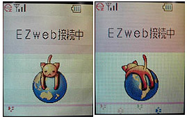 ezweb接続画面の初期登録アニメーション。ここでもネコがくるくる回る
