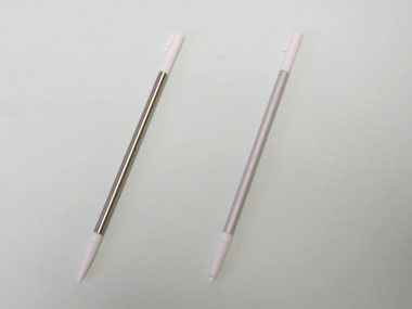 右側面上部から取り出すスタイラスはT/NRシリーズと長さと太さともに同じ。これまではつや消し加工だったが、SJ30のスタイラスはミラー加工されていた。スタイラスの上部を外すとリセットボタンがあるのは従来通りだ。