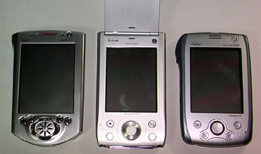 ハードウェア構成はシンプルだ。CPUはStrongARM/206MHz、ディスプレイは3.5インチ、拡張スロットはType II CFカードスロットのみ。側面にボタン類などは一切なく、前面にも4方向キーと4つのボタンだけだ。 CPUこそ最新のARMプロセッサPXA250ではなくStrongARMだが、現時点デメリットとは言い切れない。OSやソフトウェアの多くが現時点ではPXA250向けにチューニングされておらず、PXA250とStrongARMはほぼ同等程度の実処理能力となっているからだ。