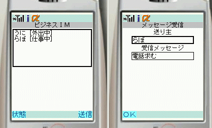 常駐アプリケーションの例として、ビジネスIM(インスタントメッセンジャー)を待ち受けiアプリとして作成することを前提に仕様決定を行う