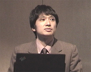 ![]() 富士写真フイルム 電子映像事業部の渡邉幹緒氏 これは、Motion JPEG形式の動画を、同社が提供するサービス「Picture The Future」経由でアップロードすると、指定した配信先のFOMAで動画を見ることができるというもの。ユーザーは動画を変換する手間なしに、FOMAに動画を配信できるようになる。 「クレードルにカメラを置いて、動画を選んで、サービスボタンを押すという3つのアクションでFOMAにデータを配信することができる」(富士写真フイルム 電子映像事業部の渡邉幹緒氏)。富士写真フイルムのデジタルカメラとネット接続環境さえあれば配信でき、動画用ソフトを用意する必要もない。