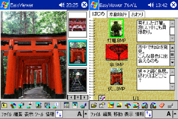 ![]() 多彩な表示モードやアルバム機能を搭載。新バージョンでは表示速度や操作性が向上している JPEG、BMP、FlashPixに対応にしており、表示モードとして「1枚」「インデックス」「マルチウィンドウ」「スライドショー」が用意されている。手書きペイント機能を搭載したほか、画像の回転、明るさの変更なども可能。 今回のバージョンアップでは、画像の表示速度が向上した。また、複数の画像を選択できる「選択モード」が追加され、複数画像に対し「回転」「拡大」「明るさ変更」など、同一の操作を簡単に行うことができる。さらに選択した画像を一括して「EasyViewerアルバム」に追加することも可能。 なお、EasyViewer for Pocket PC Version 3.2/3.3のユーザーと、Pocket Presenter、同Plusに付属しているEasyViewer for Pocket PCユーザーは無償でアップグレードできる。 関連リンク[ITmedia] Copyright © ITmedia, Inc. All Rights Reserved. モバイルショップ