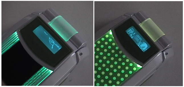 携帯電話のデザインが変わりばえしない──というのはよくユーザーから聞かれる言葉だ。各メーカーともそれぞれ個性出そうと力を尽くしているが、背面にカメラや大きなサブ液晶が備えられるようになると限界が見えてしまう。 「A1101S」はカメラを廃し、小さなサブ液晶にすることで、意表をつくデザインを実現した。着せ替えは、ソニー・エリクソン・モバイルコミュニケーションズ製のau端末ではおなじみだが、それをさらに推し進めて背面全体を着せ替え可能にし、光らせるというものだ。 着せ替えカバーは製品に3枚付属し、別売りのものも合わせると16通りのバリエーションを楽しめる。実際にすべてのカバーを前にしていろいろ付け替えていると、「この洋服ならこのカバー」「このパーティに行くならこれ」というように、着せ替え人形で遊んでいるような楽しさだ。