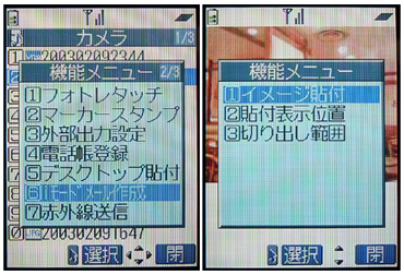 N2051は、VGAサイズの画像でも電子メールに添付して送信できる。相応のパケット料金が必要だが、この点はFOMAならでは。ただしVGAサイズの画像を赤外線送信することはできない。 公式な使い方ではないが、静止画をPCで赤外線受信し、コンバータを利用すればJPEGファイルとして取り出すことができる。USBケーブルとデータリンクソフトを利用すればPCにも転送できるはずだが、出先で他人のPCにちょっと転送なんて使い方はしたくなると思う。 カメラ機能における最大の不満は、フォルダ分けもできなければ、サムネイル機能もないことだ。さらに自動生成されるファイル名は年月日(8桁)+時分(4桁)であり、1分以内に複数の画像を撮影すると同じファイル名になってしまう。もちろん内部的には別画像として管理されるが、PCに取り込んだ場合などには不便この上ない。最大撮影枚数が100枚程度と、それほど静止画を端末内に保存できるわけではないが、ちょっとお粗末だ。