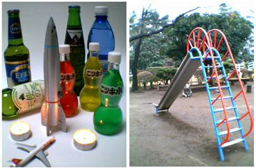 P251iSはここまでで紹介した基本的な撮影機能に加え、セルフタイマー、連写(iショット(S)時に4枚まで連写できる)、フレーム撮影機能を備えている。どちらかというとお遊び的なものが多い。連写機能を使うと、こういうマルチショット撮影も可能だ。