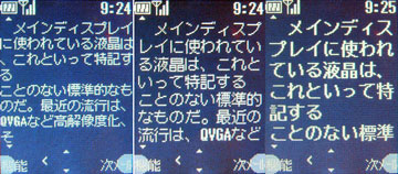 ![]() メール閲覧時に選べる3つのフォントサイズ。16ドットフォントはかなり大きい