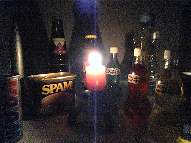 ろうそく1本だけで、ノーマル、ナイト、補助光点灯と3パターン撮ってみた。ノーマルでもそこそこ撮れるがやはり増感されるために全体がノイジーになる。ナイトだと手ぶれしやすいがノイズはやや抑えられてなかなかきれいなデキに。補助光をつけるとかなり明るく撮れる。見た目のわりに明るい補助光である。