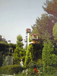 晴天下でなかなかつらい状況だが、思ったより色はしっかり出ていてきれい。さすがにディテールはデコボコしているし、背景の木々の緑はくすんでいるけれども、ぱっと見た感じは全然問題ない。よく見ると四隅がかなり内側に向けて流れているなど、レンズ性能が追いついていないのが見てとれるが、30万画素クラスとしてはなんとか合格レベルだ。