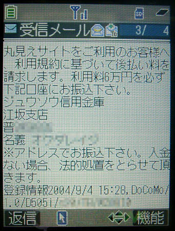 こうした悪質業者の手口には、既に一定数のユーザーが被害にあっているようだ。ドコモやボーダフォンがそれぞれ注意を促す案内を出している。