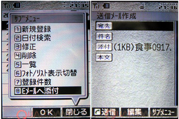 PCと連携した便利な入力が可能なのが、auとボーダフォン(パケット対応機)だ。PCのOutlookに入力された予定を「vCalendar形式(.vcs)」形式で書き出し、メール添付すると、携帯側で簡単に登録を行える。au端末なら、データの複数添付も可能なので、まとめていくつもの予定を登録できて便利だ。ちなみにau向けには、カシオソフトが「MySync Suite」というPCとの連携に便利なソフトをリリースしている(9月3日の記事参照)。