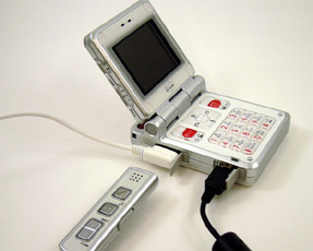 “音楽携帯”を前面に打ち出しているのが三菱電機製の「Music PORTER」(2004年12月の記事参照)。音楽CDの楽曲や、既にMP3、WAV、WMAファイルなどとしてPCに取り込んだ楽曲を、付属のWindows用音楽管理ソフト「BeatJam」に登録し、メモリースティックDuoに転送することで音楽を楽しめる。メモリースティックDuoにはATRAC3フォーマットで記録され、ファイルはMagicGate機能で暗号化される。