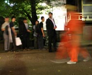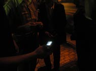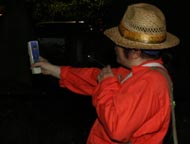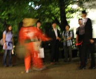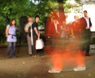 まるでニュー●イプのように的確な電話ナビゲーションのおかげで無事にみんなと合流、次の実験場所である某神社へ向かう。しかし、オレンジ色のつなぎを着た堤会長を筆頭に、10名ほどの集団がぞろぞろと歩く姿はかなり目立つ。夜とはいっても国道沿い、信号待ちの車内から不思議そうにこちらを覗く視線が痛い。先ほど感じた安堵感はすっかり忘れ、はぐれないように集団を視界の端に入れながら、少し離れた場所をついていくのだった。