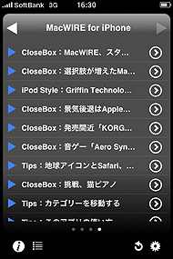 ITmedia for iPhoneは、iPhoneやiPod touchでITmediaの記事を読むことに特化したニュースアプリ。本体内にデータをキャッシュ(一時的に保存)するので、地下鉄の中など電波の届かないところでも記事を読むことができる。記事の分類は、「Apple」「デジタルライフ」「IT」「MacWIRE for iPhone」の4つ。例えば本誌Biz.IDの記事はAppleかITのカテゴリに含まれている。
