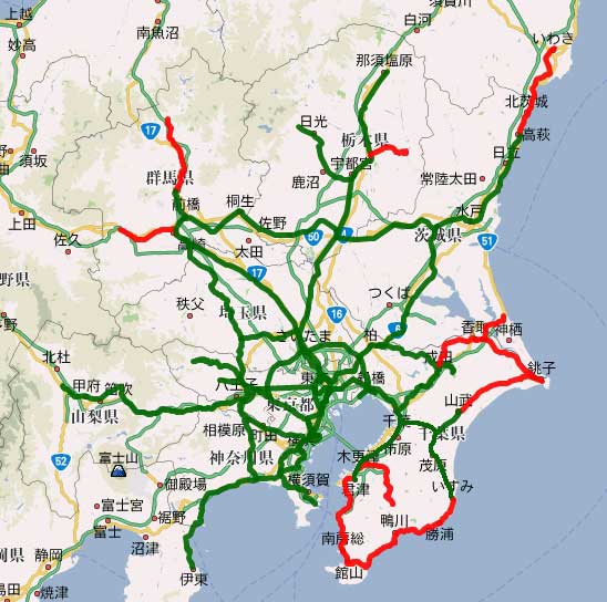 ちなみに「東京近郊区間」の範囲をGoogleマップで表示させるとこうなる。