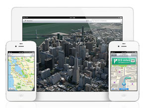 iOS 6では地図機能をGoogle Mapsからアップル独自のものに切り替える(写真=左)。iOS 6では、航空券、映画のチケット、会員証、クーポンなどのさまざまなチケットやカードを電子的に1つにまとめるアプリ「Passbook」も追加される(写真=右)マイクロソフトがPC分野において、現在でも大きなシェアを持ち、また大きな利益をたたき出しているにもかかわらず、以前ほどの存在感を示せていないのは、“OS”という殻の中に入っていたからだと思う。