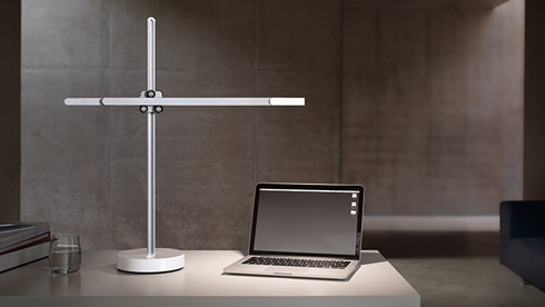 オフィス空間や家庭での作業に適した4000K(ケルビン)の白色LEDを搭載する卓上ライトです。十字に組まれたシンプルで洗練されたデザインはインテリアとしても空間に溶け込みます。
