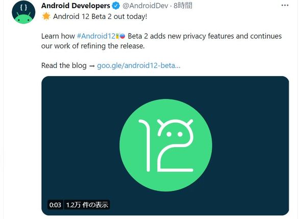 米Googleは6月9日(現地時間)、次期モバイルOS「Android 12」の「beta 2」を公開した。beta 1をインストール済みのPixelシリーズなどにロールアウト中だ。