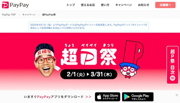 PayPay、ヤフー、ソフトバンクは、2月1日〜3月31日に大規模キャンペーン「超PayPay祭」を開催している。