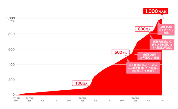 また、PayPayは本人確認に関する取り組みの一環として、本人確認を完了しているユーザーを対象としたキャンペーンを2021年12月、2022年6月の2回に渡り実施。PayPayの本人確認(eKYC)を完了したユーザーが、7月に累計で1000万人を突破した。