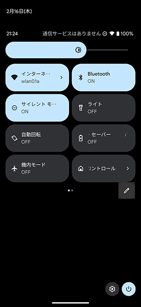 設定の変更はクイック設定のタブ下部にある小さなペンマークをタップして行う。これをタップすると、現在設定している設定が上部、新しく追加できる設定が下部に表示され、ロングタップしてからドラッグすることで追加/削除が可能となる。