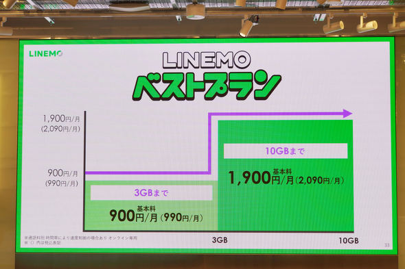 新料金「LINEMOベストプラン」発表 3GB以下で990円、3〜10GBで2090円 5分以内かけ放題とのセットプランも