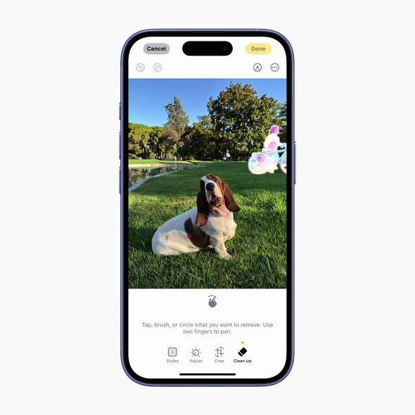 写真アプリでApple Intelligenceを活用すると「自然な言葉で特定の写真や動画の特定シーンを探せる」「自然な言葉による指示で、動画を自動作成できる」「クリーンアップツール写真の不要な被写体を削除できる」といった機能が使えるようになる。