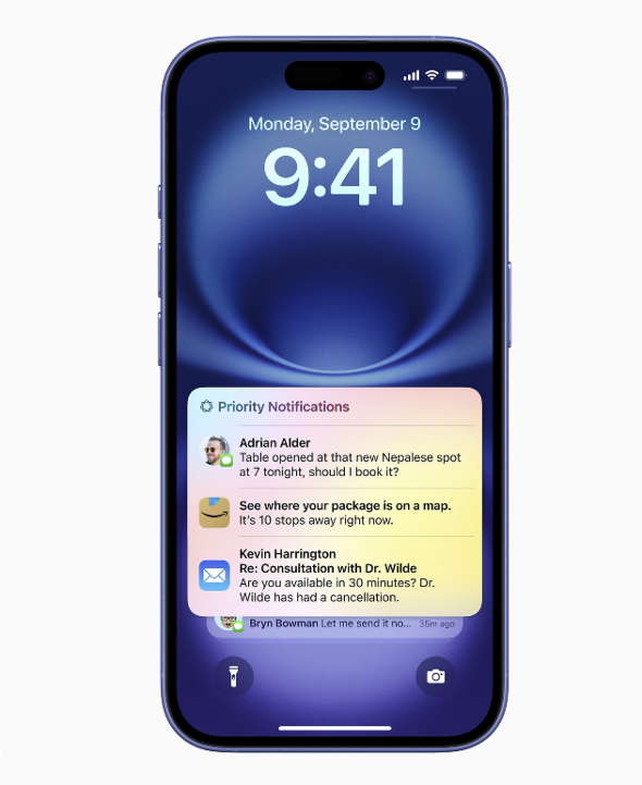 複数のアプリからの通知を要約し、すぐに確認する必要がある重要な通知のみを知らせたり、受信したメールの内容を読み取って重要なメールを優先的に通知したりできる。