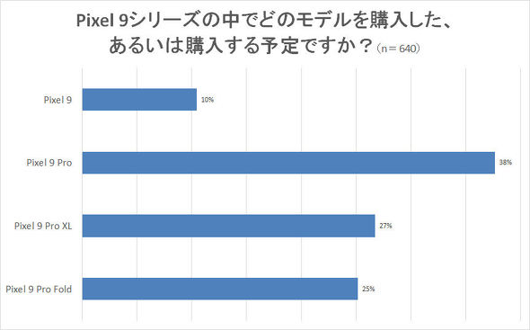 ITmedia Mobileでは読者アンケート企画として、Pixel 9シリーズでどのモデルを購入するかを聞きました。8月30日から9月6日までアンケートを実施したところ、731件の回答が集まりました。今回は「Pixel 9」「Pixel 9 Pro」「Pixel 9 Pro XL」「Pixel 9 Pro Fold」の4モデルで選択肢が多いですが、どのモデルが特に選ばれたのでしょうか。