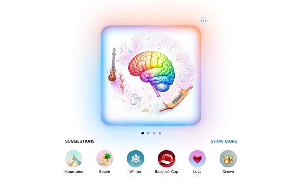 Image Playgroundはシンプルな画像生成ツール。プロセスを開始するために選択できるコンセプトが提示されたり、必要な画像の種類の説明を入力することもできる。Genmojiと同様に、写真のピープルを使用して、その人物に基づく画像を生成できる。また、写真の個々の画像を使用して、関連する画像を生成することもできる。