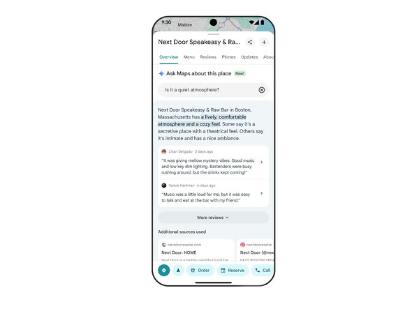 これから行く予定の場所に関するレビューも検索して数あるレビューを細かく確認せずに済む。数あるレビューをGeminiが要約するため、例えば、レストランなら屋外席の有無や静かな雰囲気がどうかが簡単に分かる。